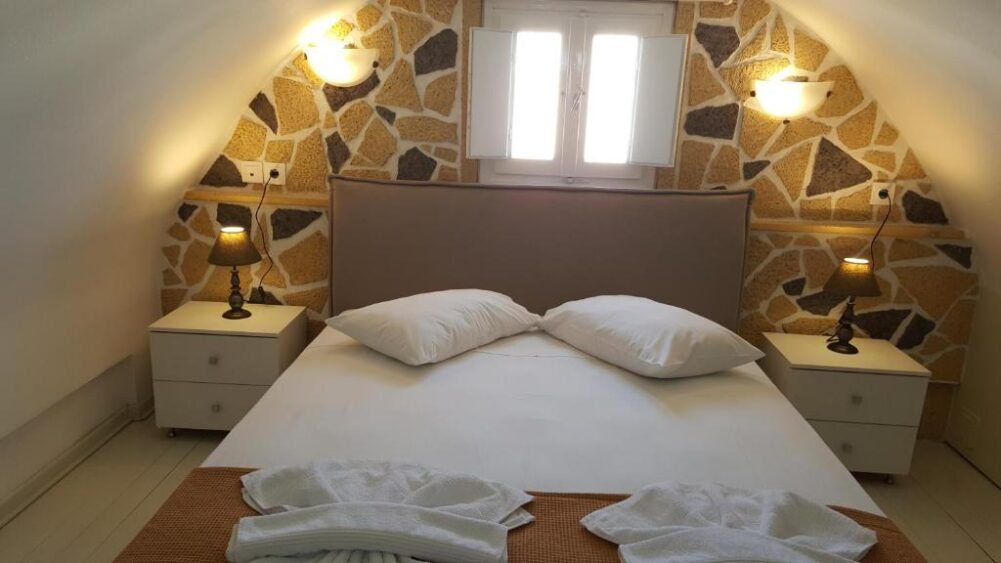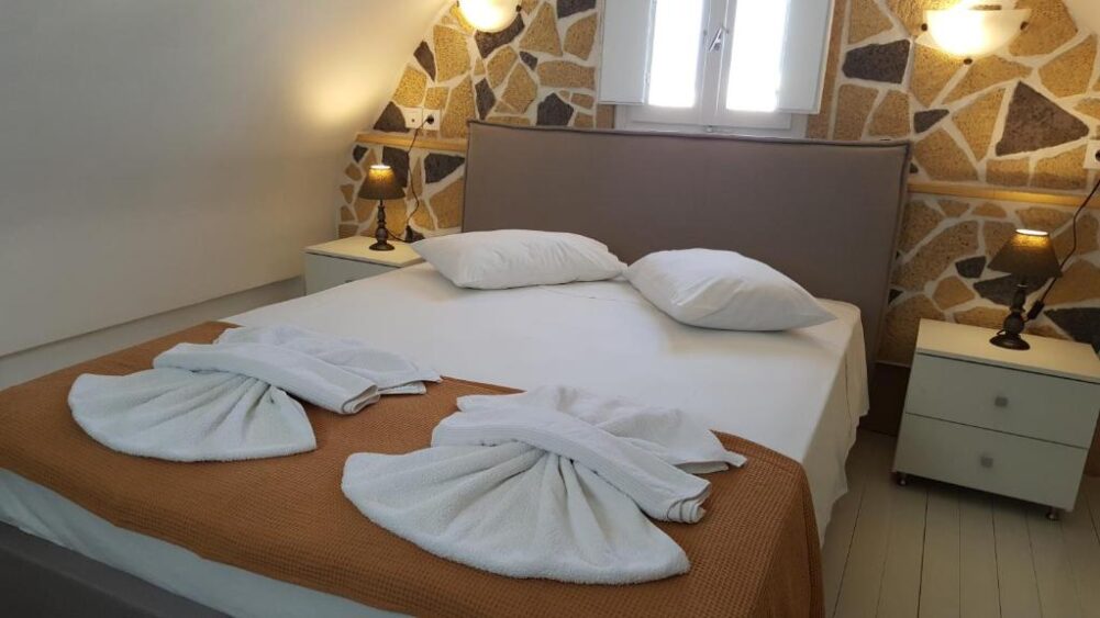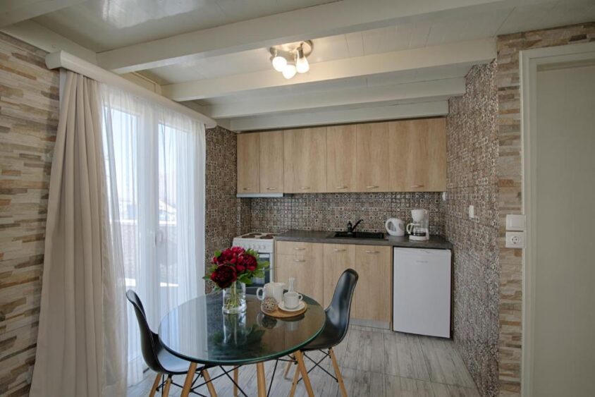 Air-conditioned apartment with free WiFi and balcony overlooking the town and the Aegean Sea. Includes kitchenette.